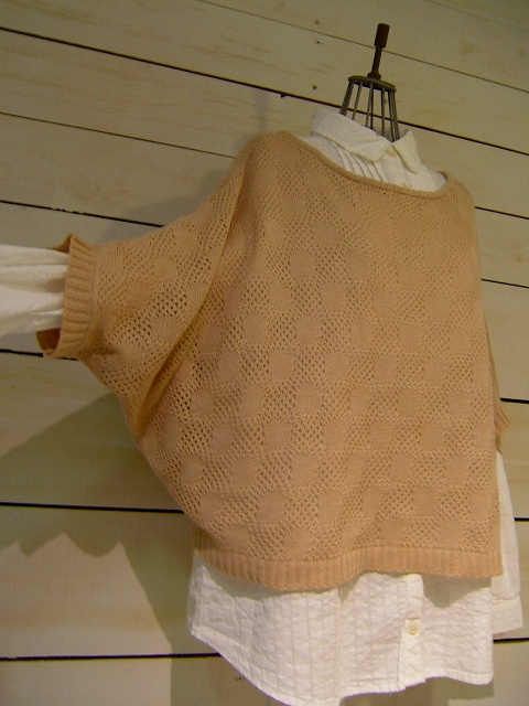 透かし編みドルマンショートニット