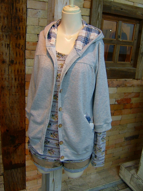 そしてお約束のボタン止めタイプ!カーディ感覚で着れます