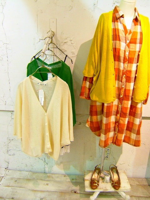 ここ2~3年夏のカーディガンの需要が伸びっぱなしで、種類も3倍くらいになっています。夏色から9~10月まで着れそうなシックな色目まで幅広く。重ね着しやすいデザインが多いから、暑い10月中旬まで活躍は間違え無し!